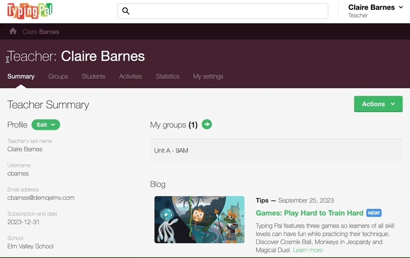 🎉 That’s it! Your students can now log in to their account and start exploring Typing Pal.