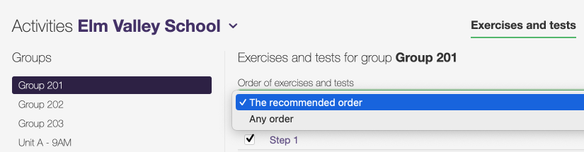 - The recommended order—Students must complete an exercise before they can move on to the next.