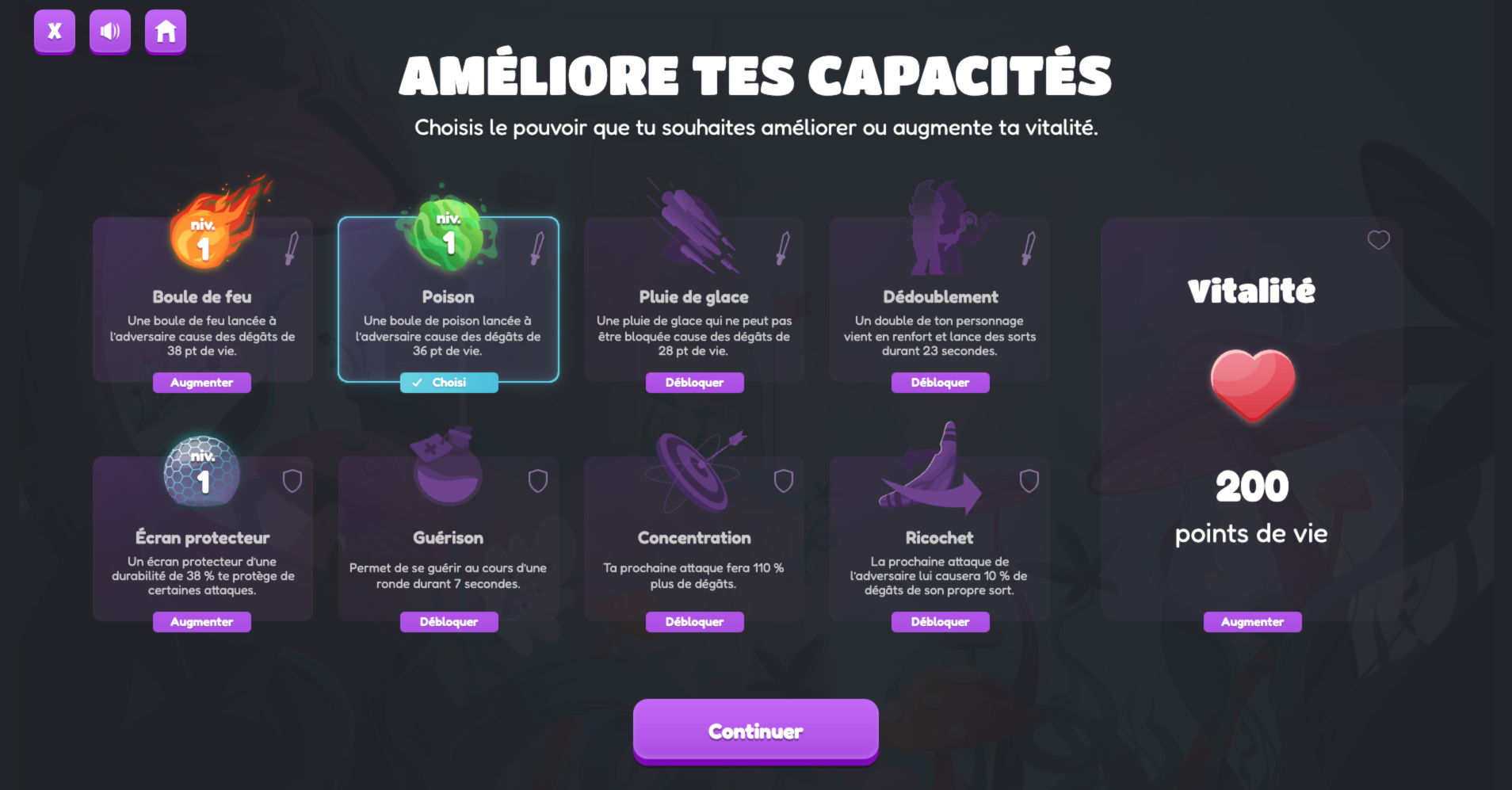 Utilisez l’ensemble du clavier pour lancer jusqu’à huit différents sorts. Après chaque duel remporté, vous pouvez augmenter les pouvoirs de votre personnage. La stratégie est de mise dans le choix des sorts durant le duel, mais aussi dans le choix de leur puissance. Plus le sort est puissant, plus il contient de caractères à taper!