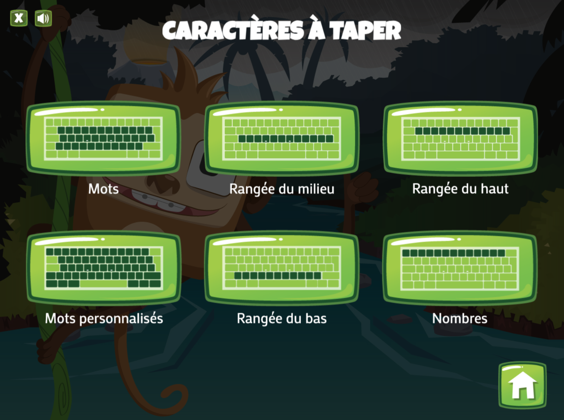 Jouer est un excellent moyen d’apprendre! Les jeux éducatifs de Tap’Touche vous offrent des activités d’apprentissage ludiques et variées pour perfectionner votre frappe. Les trois jeux présentent une suite à difficulté croissante : Balle cosmik se joue un caractère à la fois; Singes en péril teste votre habileté à taper des suites de caractères et des mots que vous pouvez même personnaliser; Duel surnaturel lance le défi des frapper des suites de mots et des phrases.
