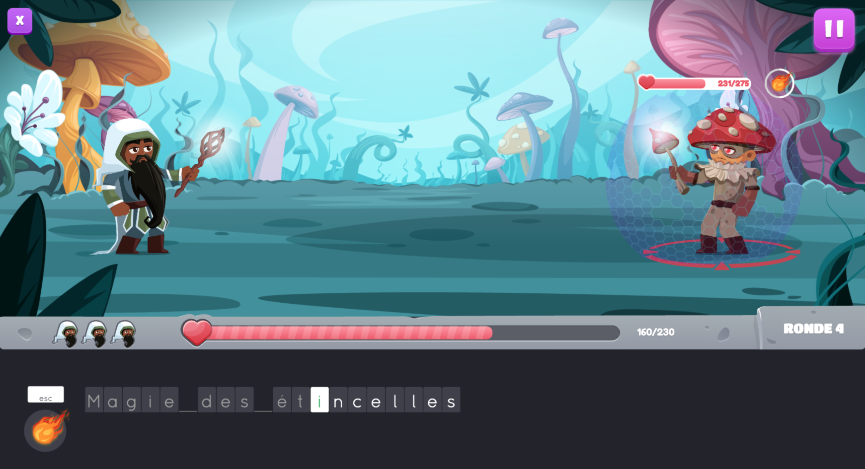Scénario : Un maléfice jeté sur le royaume ensorcèle ses sujets. Pour les libérer, il faut les affronter dans un combat de magie, en tapant correctement des sortilèges composés d’un ou de quelques mots.