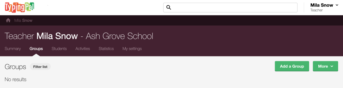 You should have received an email from Typing Pal with your login information and an invitation to select a new password. After completing this step, you will get to Typing Pal’s management interface. To log in again, use your school’s custom URL included in the email (for example, https://mapleridgeschool.typingpal.com).