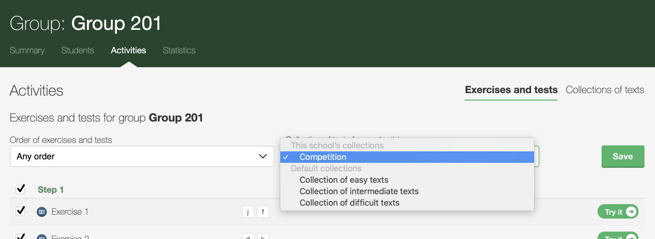 It is crucial to test the text before the competition in order to verify that all words and characters are displayed correctly, and to confirm that the level of difficulty is adequate. Right next to the text is a Try it button. This makes it easy to edit the text without leaving the page.