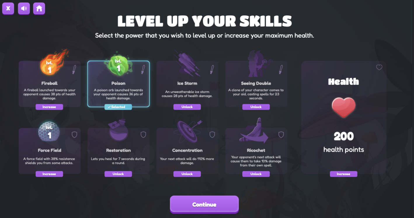 Every time a student wins a round, they’re given the option to level up their character’s powers. This new game is all about strategic choices, from the spells cast while dueling to the powers built up on the path to victory. No two games are the same!