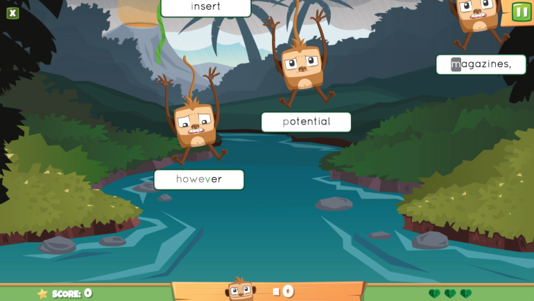 Scenario: A violent storm is raging in the forest. Carried away by the gusts of wind, the monkeys are falling into the river. Only a vine propelled by correctly typed characters can bring them back to safety.