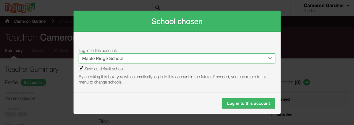 If the account is part of multiple groups or schools, a pop-up will appear asking users to choose which group or school the user wants to log in to.