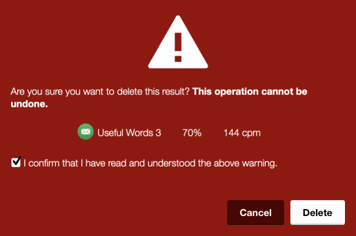 Delete a specific result to avoid this data negatively affecting a student’s statistical report.