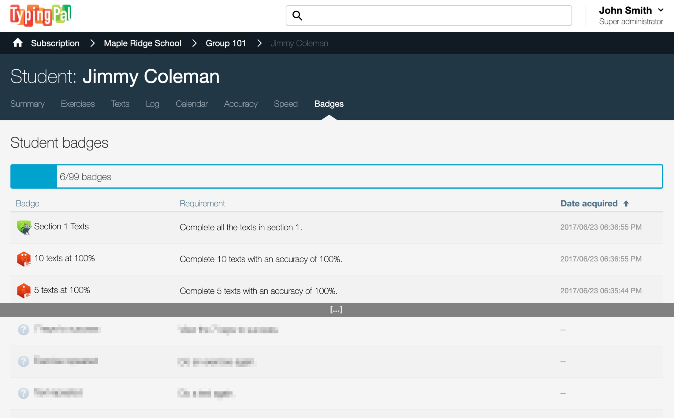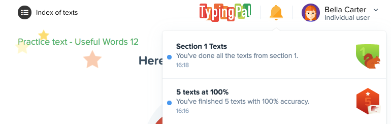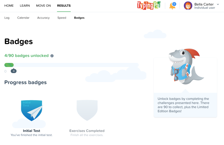 The 18 mystery badges give students a clue to encourage them to explore all Typing Pal’s features.