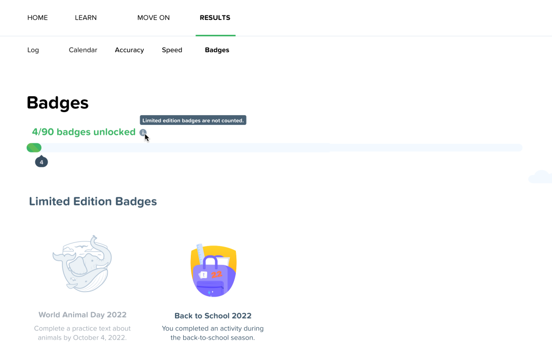 Limited edition badges are the only badges that you can unlock only within a specific timeframe corresponding to a particular event. The challenges are displayed in gray on the badges page as soon as they’re available. The arrival of a limited edition badge is also announced on Typing Pal’s Facebook page. Follow us so you don’t miss anything!