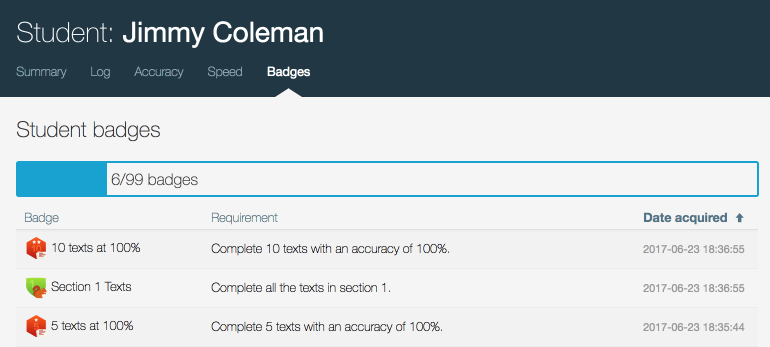 Performance badges encourage students to advance to the highest levels of keyboard mastery.