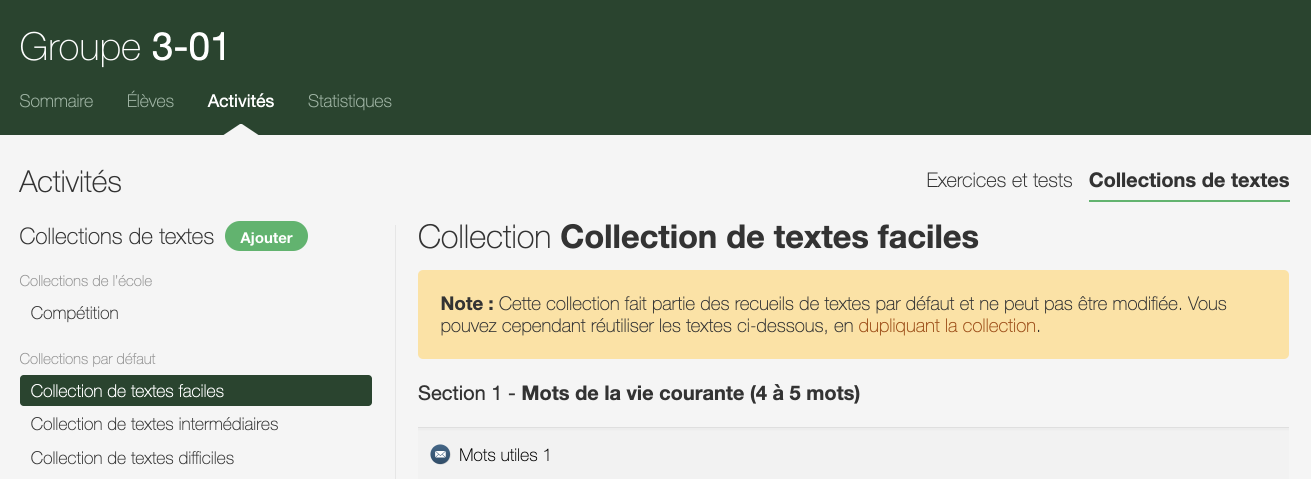 Chaque collection est accessible pour tous les groupes de l’école, ce qui est parfait pour le concours de vitesse de frappe!