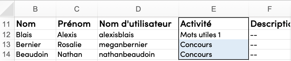 Après la tenue du concours dans un groupe, assurez-vous d’exporter les résultats dans un fichier Excel :