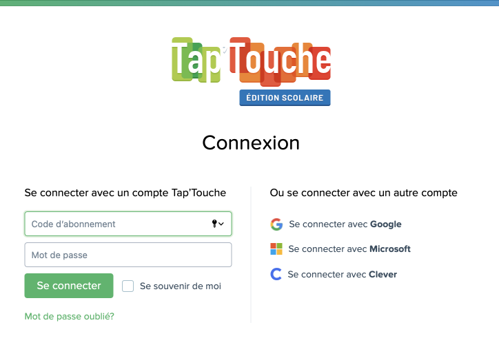 Pour vous authentifier, vous devez d’abord avoir un compte Tap’Touche et connaitre votre Nom d’utilisateur et votre Mot de passe.