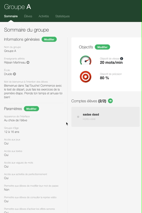 Lorsqu’un nouveau groupe est créé, les élèves ont accès à toutes les vagues de mots par défaut.