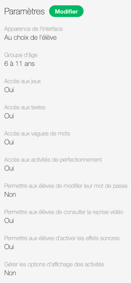 • Permettre aux élèves de modifier leur mot de passe Indisponible