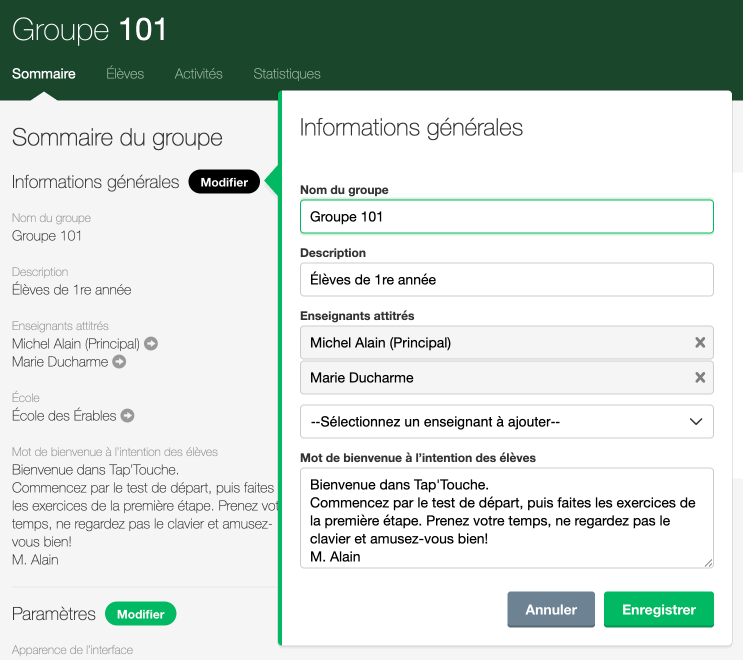 Un compte enseignant peut gérer et accéder à plusieurs groupes. Le superadministrateur ou un administrateur d’école peut aussi gérer les groupes.