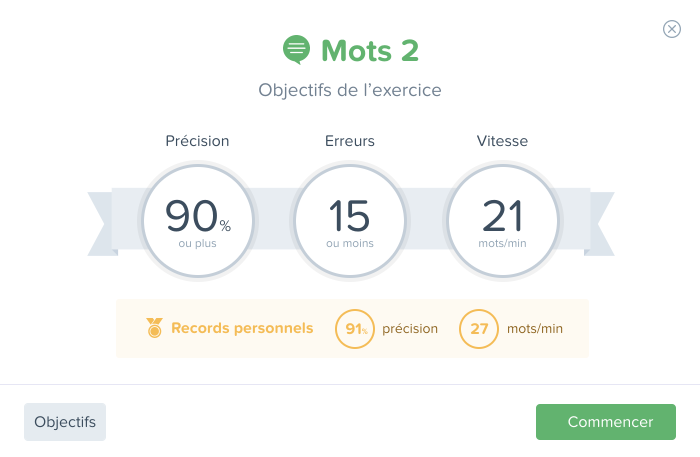 | 10 textes à 100 % | 10 textes ont été réussis avec une précision de 100 %. | |